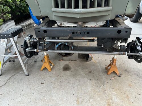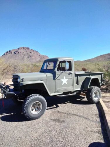 1951 Willys pickup. 1984 5.7 motor with 700R4 and 208 transfer case. All three have been rebuilt and have zero miles. Flaming river steering column. New gage cluster to fit on driver and center section of dash. Front and rear suspensions from 1974 Gladiator. Front spindles have been replaced and new Warn hubs installed. New disc brakes in front. Front differential Tru Trac limited slip, 4.10 gears, new bearings, Dutchman axles, and new dual arm hubs. Off road bumpers. Originally a flat bed that has been converted to pickup. Space between cab and bed filled with second gas tank that has never been used. New wiring harness as yet not installed. Space between bed and frame filled with second with professionally formed heavy gage steel. Winch for front . Heavy duty Heim joint high steer with power steering box in front. This is an incomplete project but a fun one. I will consider any serious and reasonable offer. Vehicle located in Southern California.