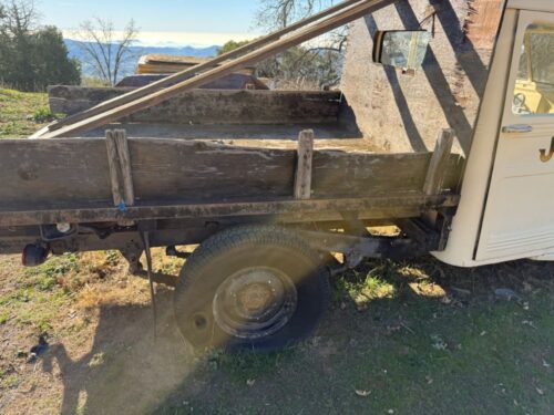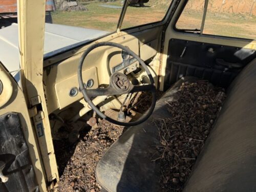 Truck has sat for a decade, and is not in running condition, but the body is in good shape. Axles are frozen. Squirrels have eaten a lot of the engine compartment.