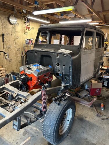 Selling our 1957 Willy’s wagon project. It has a fresh 283 SBC, 700R4 and NP205 transfer case. The front and rear axles are from an international scout. This is a project that has just about everything just needs the finishing touches to make it yours. Comes with power window regulators, a complete new painless wiring harness that matches the newer style Jeep steering column that has keys, it has glass but a couple of pieces are cracked. Comes with two single factory seats and one bench seat but will need upholstery. It has been converted to have power steering and there is a new reman steering box that will come with it. New fuel tank . New CPP power brake booster, new transfer case shift levers. And more I’m sure I’m forgetting. Asking 3500 OBO have clean title in hand